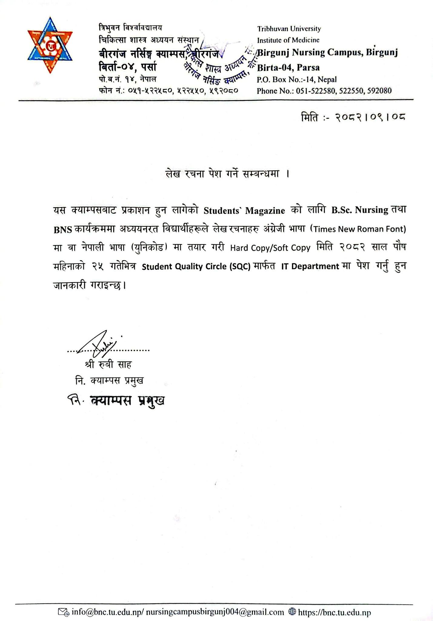 लेख रचना पेश गर्ने सम्बन्धमा ।