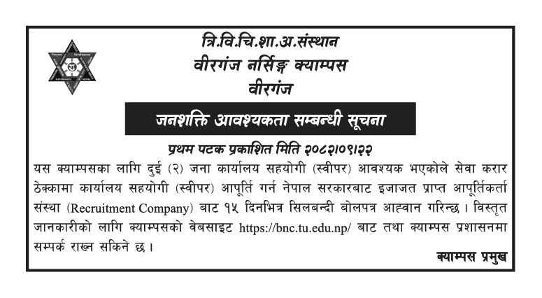 जनशक्ति आवश्यकता सम्बन्धी सूचना।