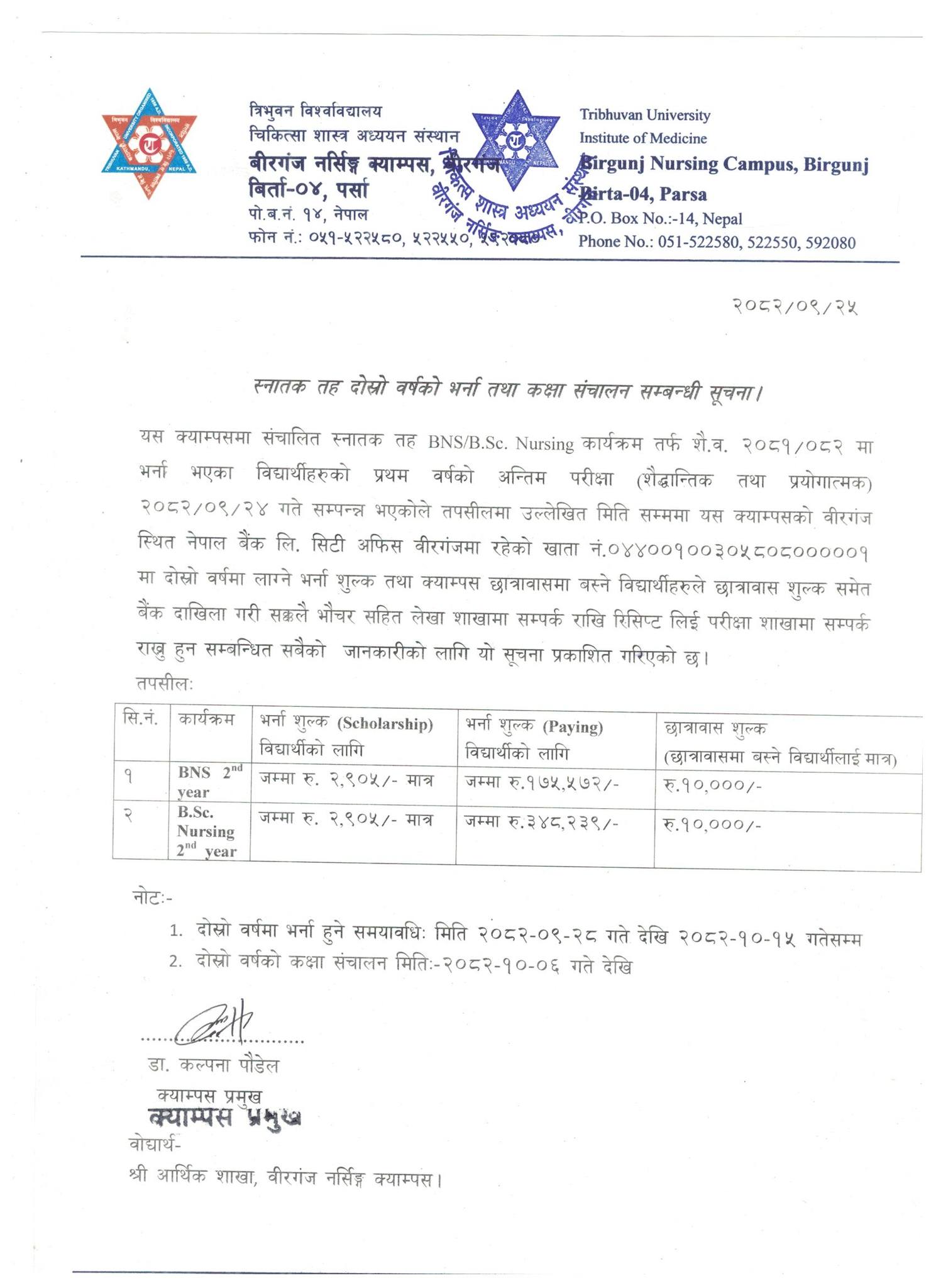 स्नातक तह दोस्रो वर्षमा भर्ना तथा कक्षा संचाालन सम्बन्धी सूचना ।