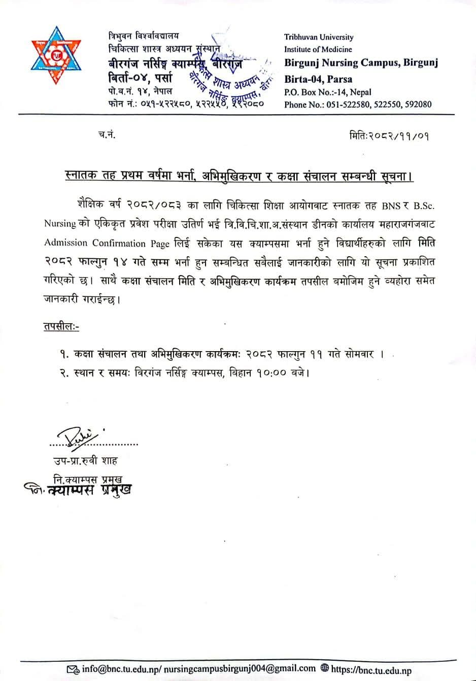 स्नातक तह प्रथम वर्षमा भर्ना, अभिमुखिकरण र कक्षा संचालन सम्बन्धी सूचना।