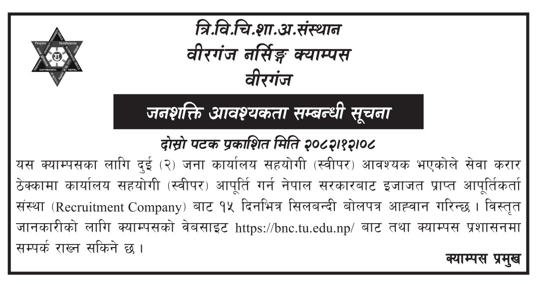 जनशक्ति आवश्यकता सम्बन्धी सूचना।