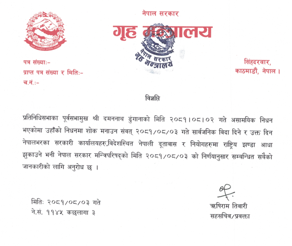 सार्वजनिक बिदा सम्बन्धी सूचना