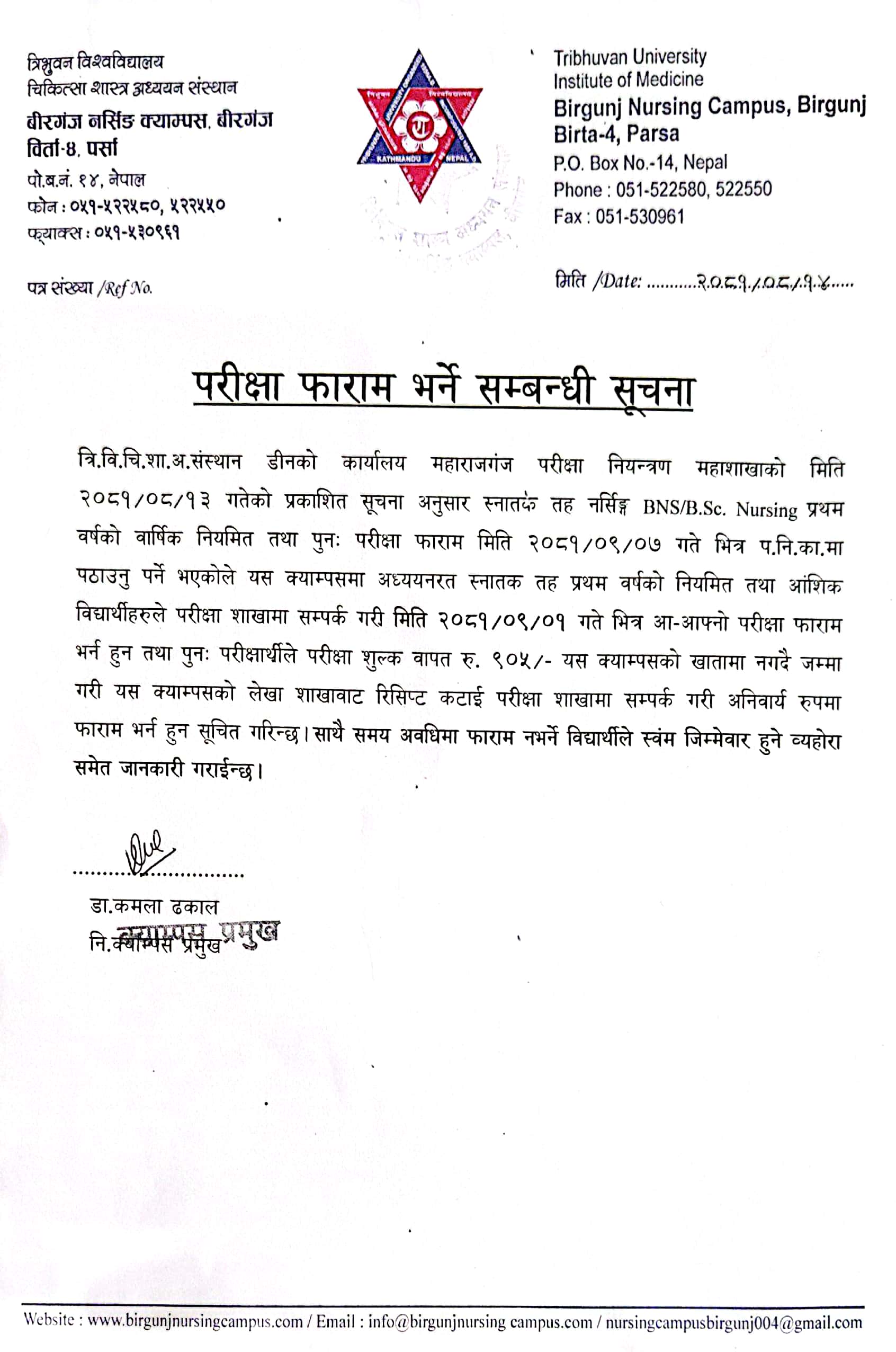परीक्षा फारम भर्ने सम्बन्धी सूचना।