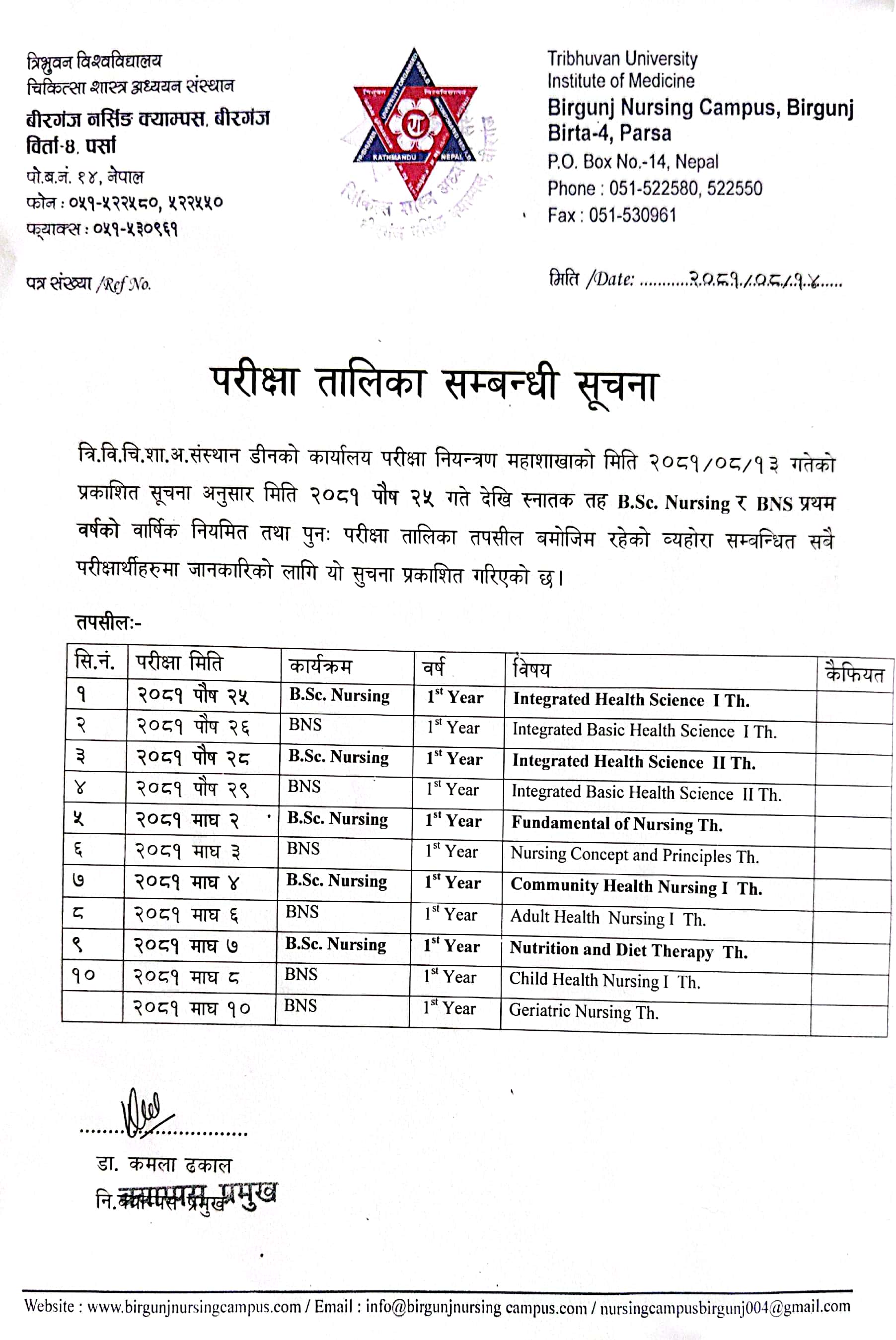 स्नाातक तह BNS & B.Sc. Nursing प्रथम वर्षको कक्षा...