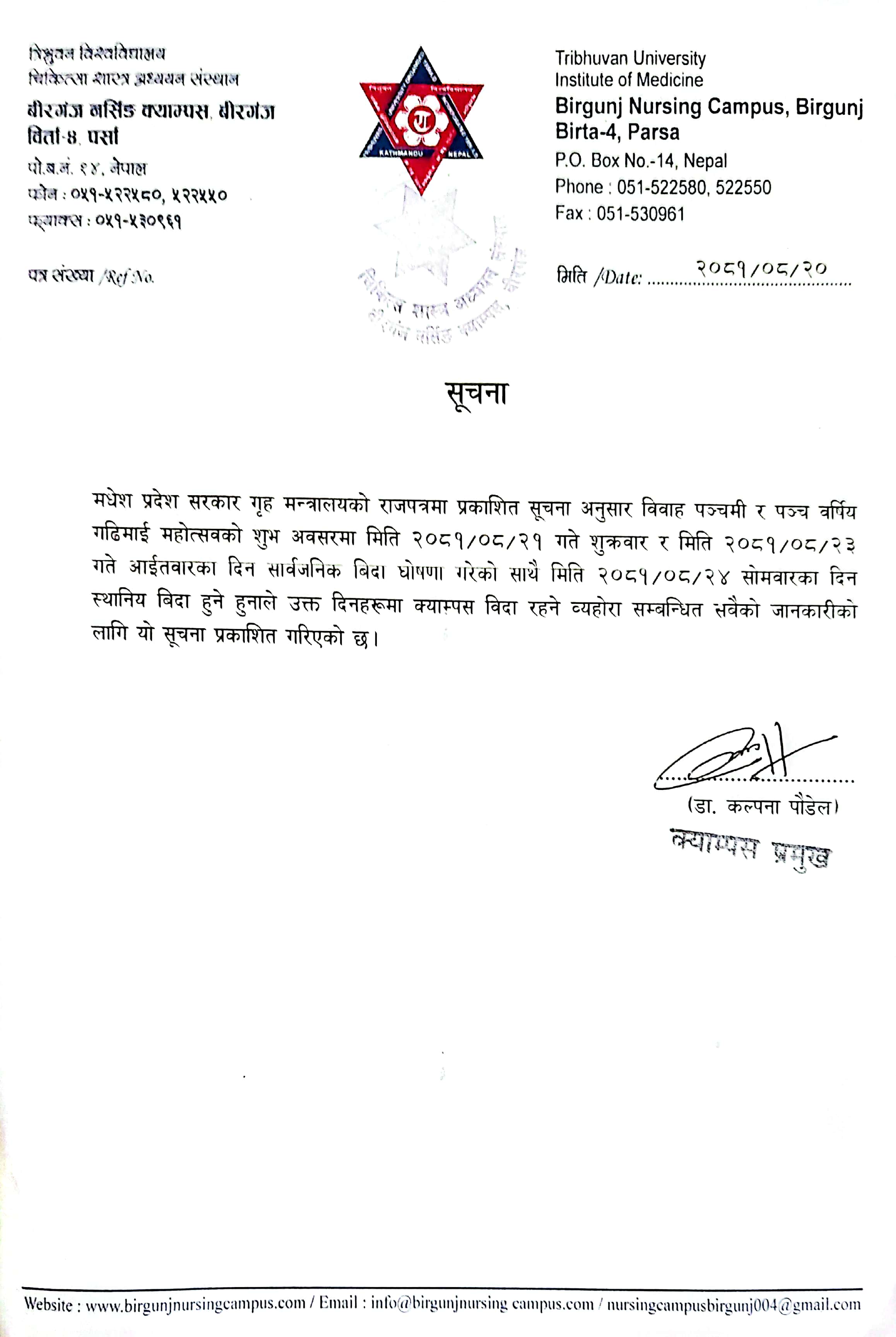 स्नाातक तह BNS & B.Sc. Nursing प्रथम वर्षको कक्षा...